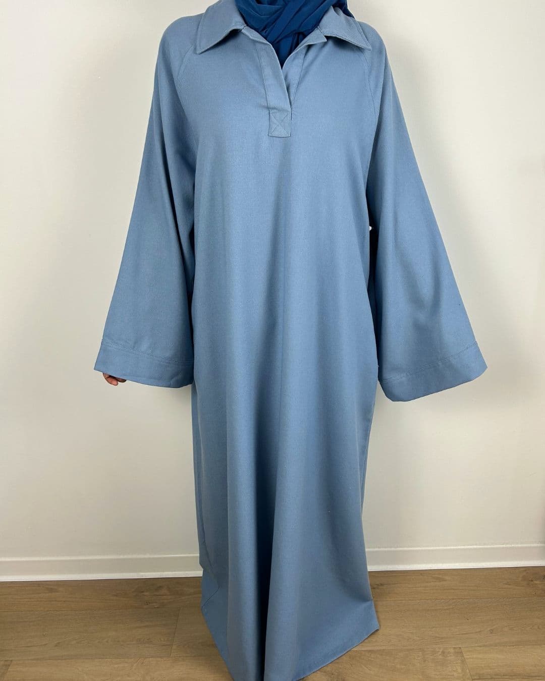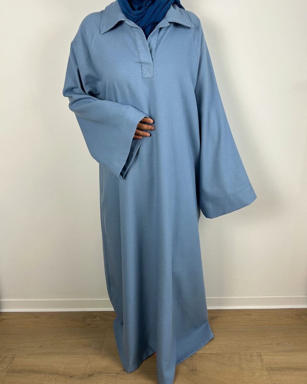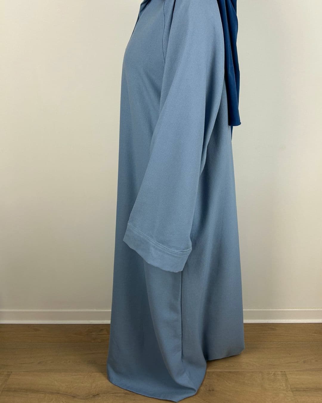 Sa matière douce et légèrement texturée assure un tombé fluide et structuré, idéal pour un porté quotidien ou pour une silhouette modestement habillée.